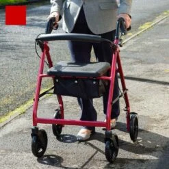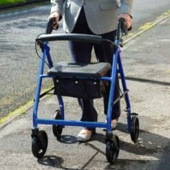 A-Series 4-Wheel Rollator with padded bag and seat gives a secure and snuggly resting place.