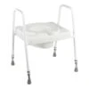 The Adjustable Height Comfort Commode is available with fixed or removable armrests.
