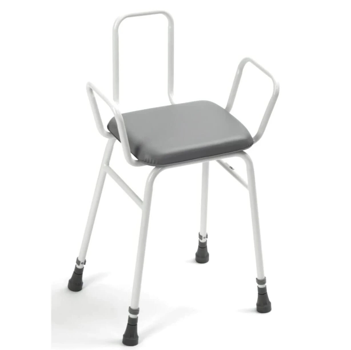 As standard, the Adjustable Height Perching Stool/Chair has non-slip, non-marking ferrules fitted to the tips of the legs.
