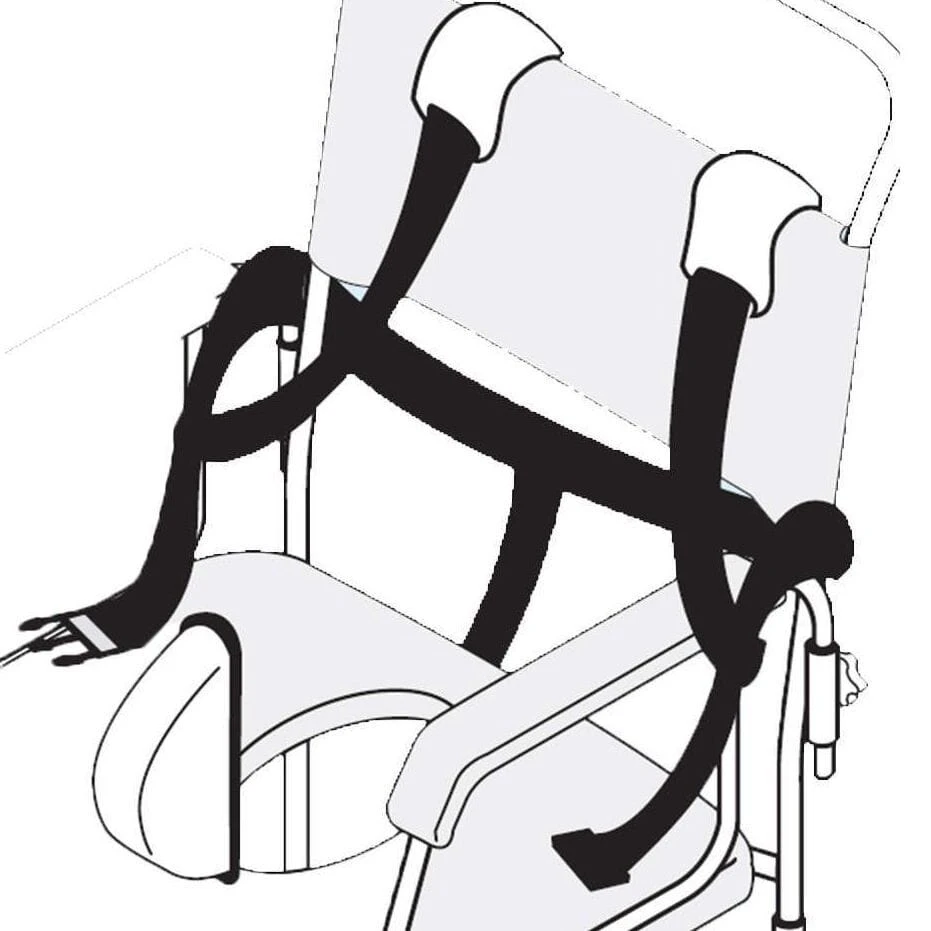 The Full Support Harness ensures that the user is securely in place when using the TransAqua Shower/Commode Chair and helps retain posture and prevents slipping.