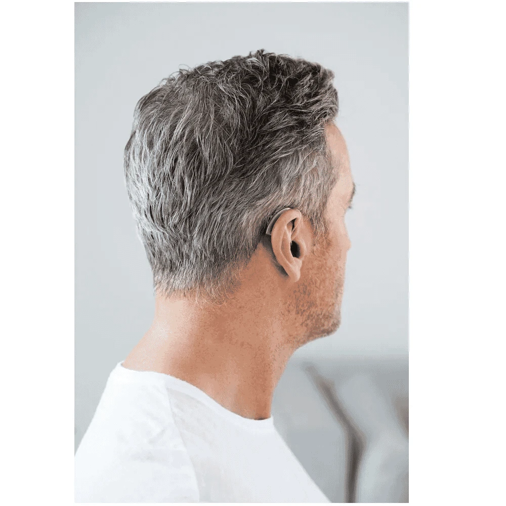 Sitting neatly behind the ear, this device accurately amplifies the noise around the user and is suitable for both indoor and outdoor uses.