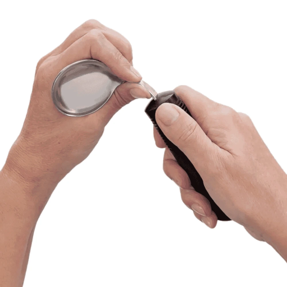 This device has an innovative raised lip which has been specially designed to ensure food and liquid remain on the spoon when moving from plate to mouth.