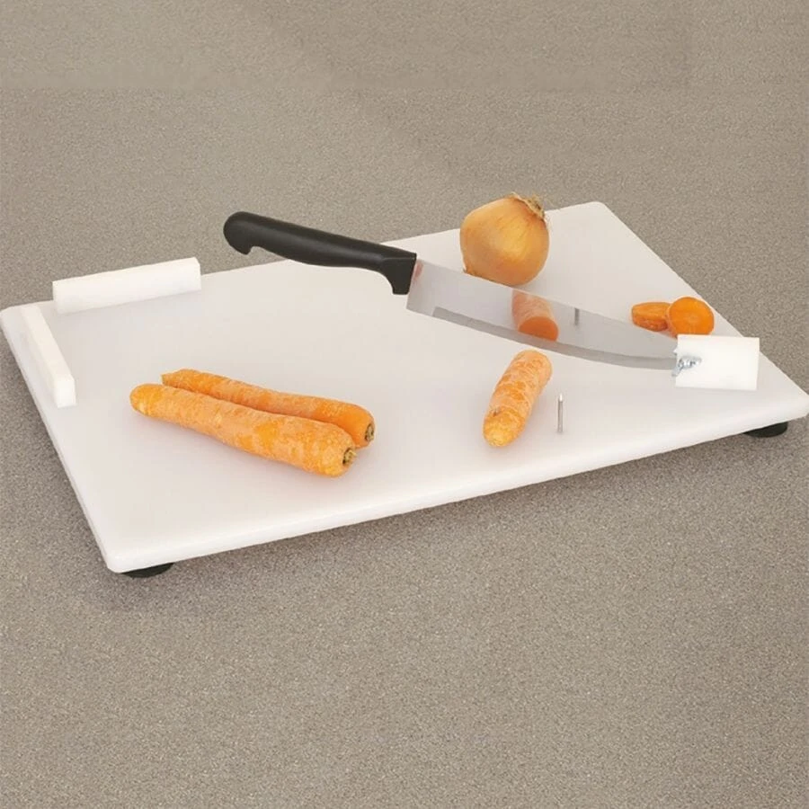 The Chopping Board With Knife is made from white polypropylene and measures 400 by 300mm (16 x 12 inches).