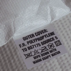 Made from pale green tinted non-woven polypropylene, which makes its flame retardant to BS7175 source 5.