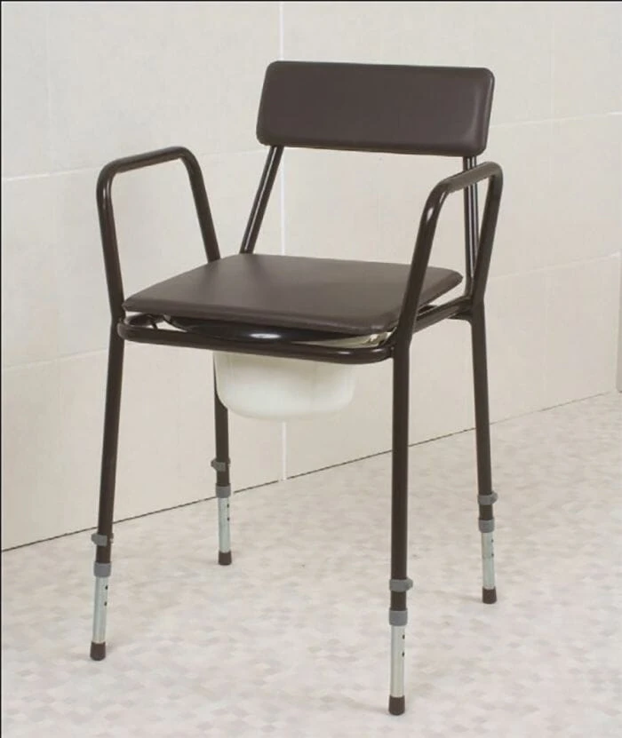 Frequently used in care homes, the Dovedale Adjustable Height and Detachable Arms Commode is stackable with others of the same model.