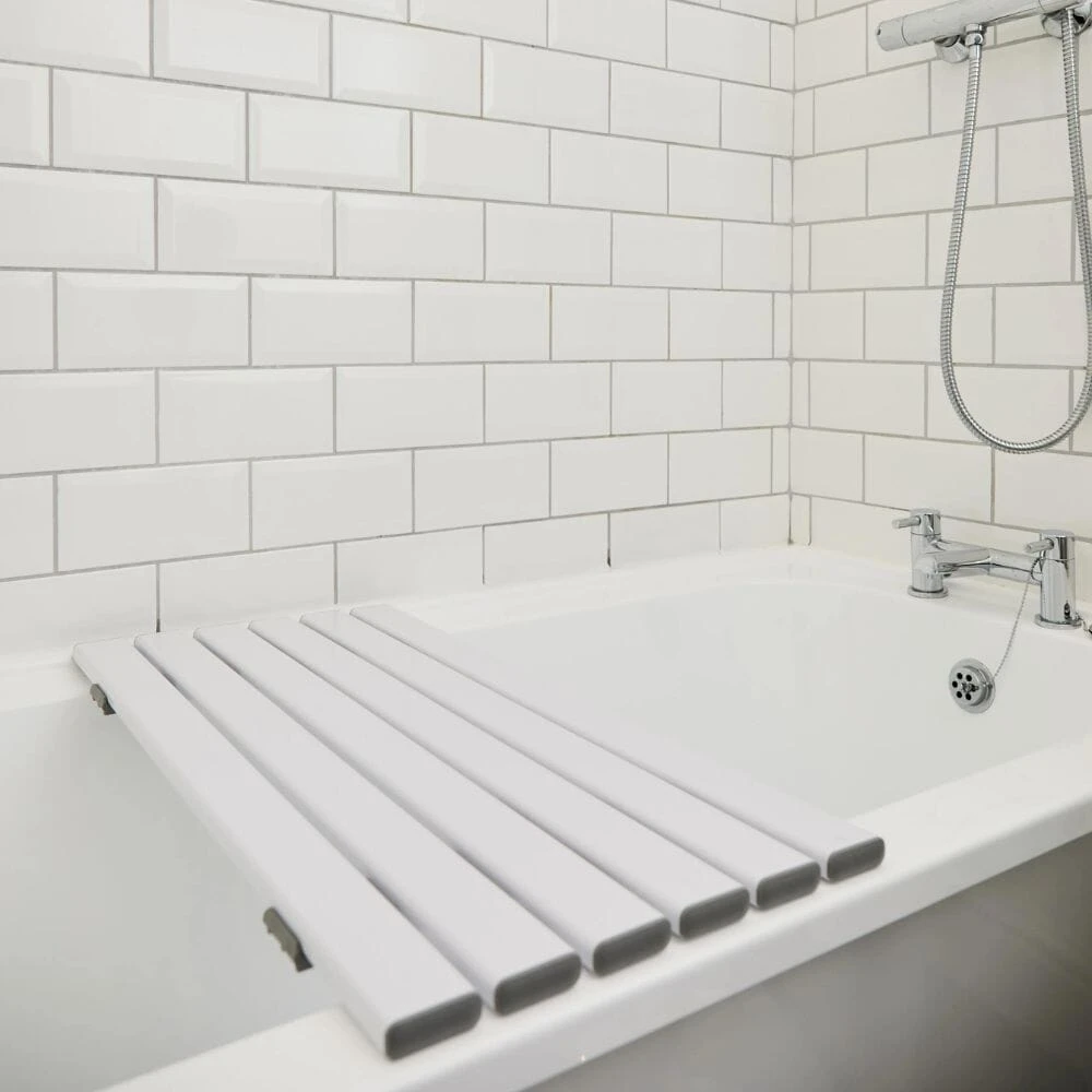 Each size has adjustable brackets which fix the board in place without damaging the bath.