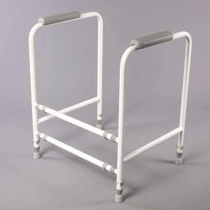 It is free-standing and both height and width adjustable to provide the ideal surround to your toilet. There are 7 height settings and 4 width setting to suit a wide range of users.