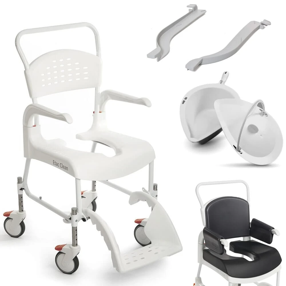 With the Etac Clean Shower Commode Chair and Comfort Kit, fitting, maneuvering, and comfort are taken to a whole new level. Say goodbye to bathroom worries and hello to a more relaxing and enjoyable bathing experience.