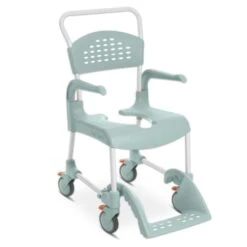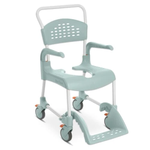 The Etac Clean Bathing Commode Chair comes with four high-quality, lockable castor wheels which provide excellent control and manoeuvrability, while strong polypropylene arm supports assist the user with sitting and standing.