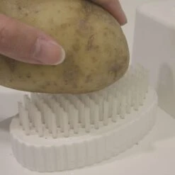 Aids in preparing the food for someone who might have limited strength or dexterity.
