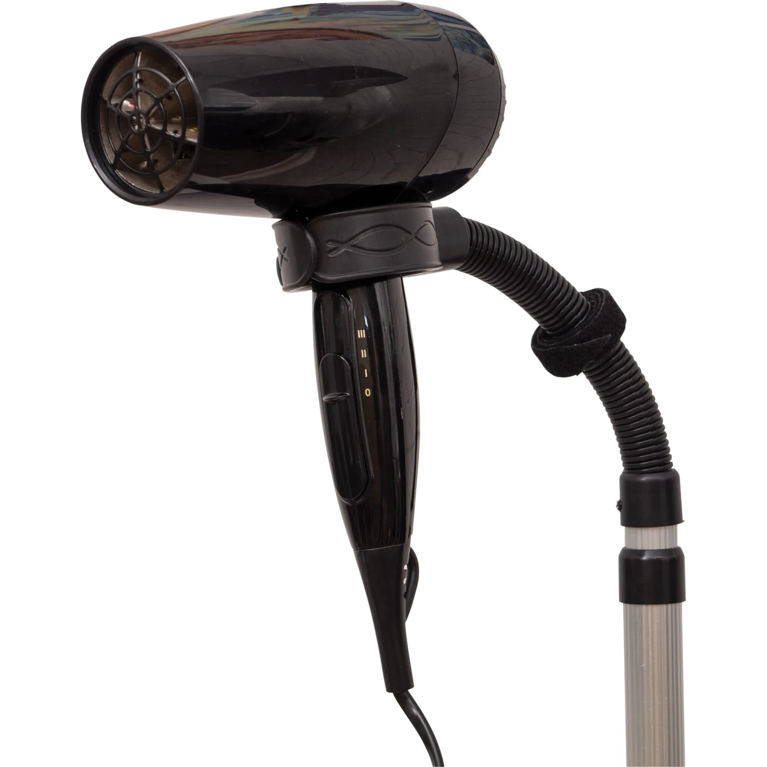 A padded clamp holds the hairdryer in place while the flexible neck is adjustable in angle, so the flow of air can be directed as required.