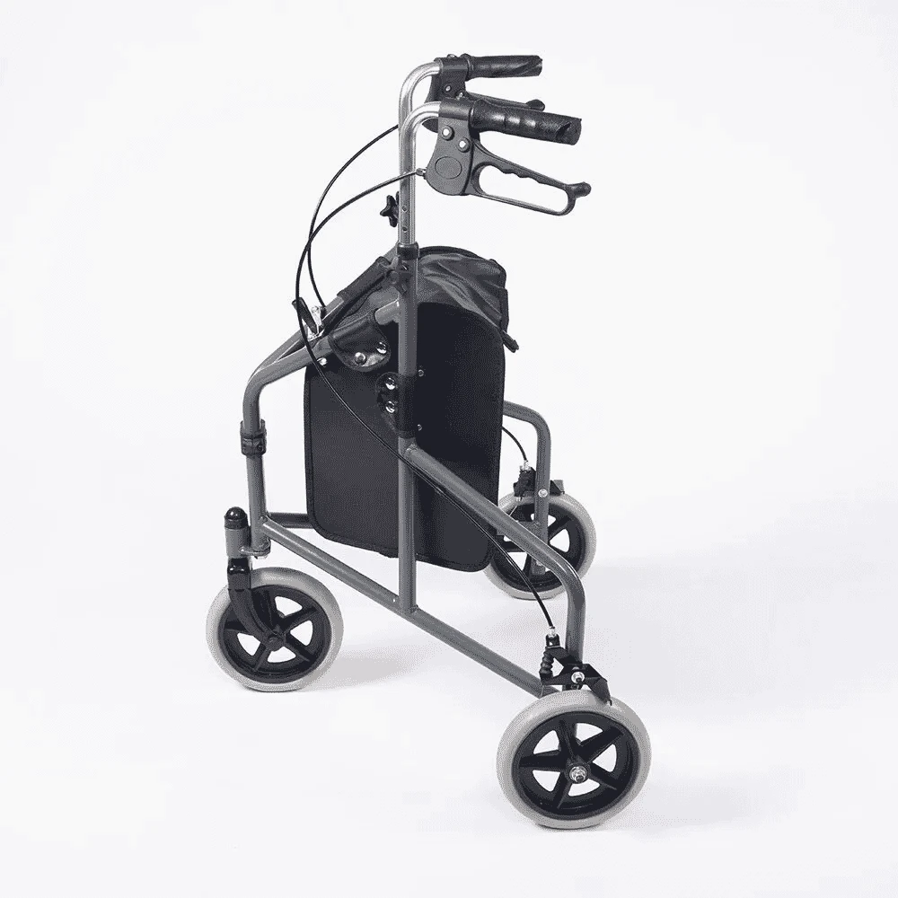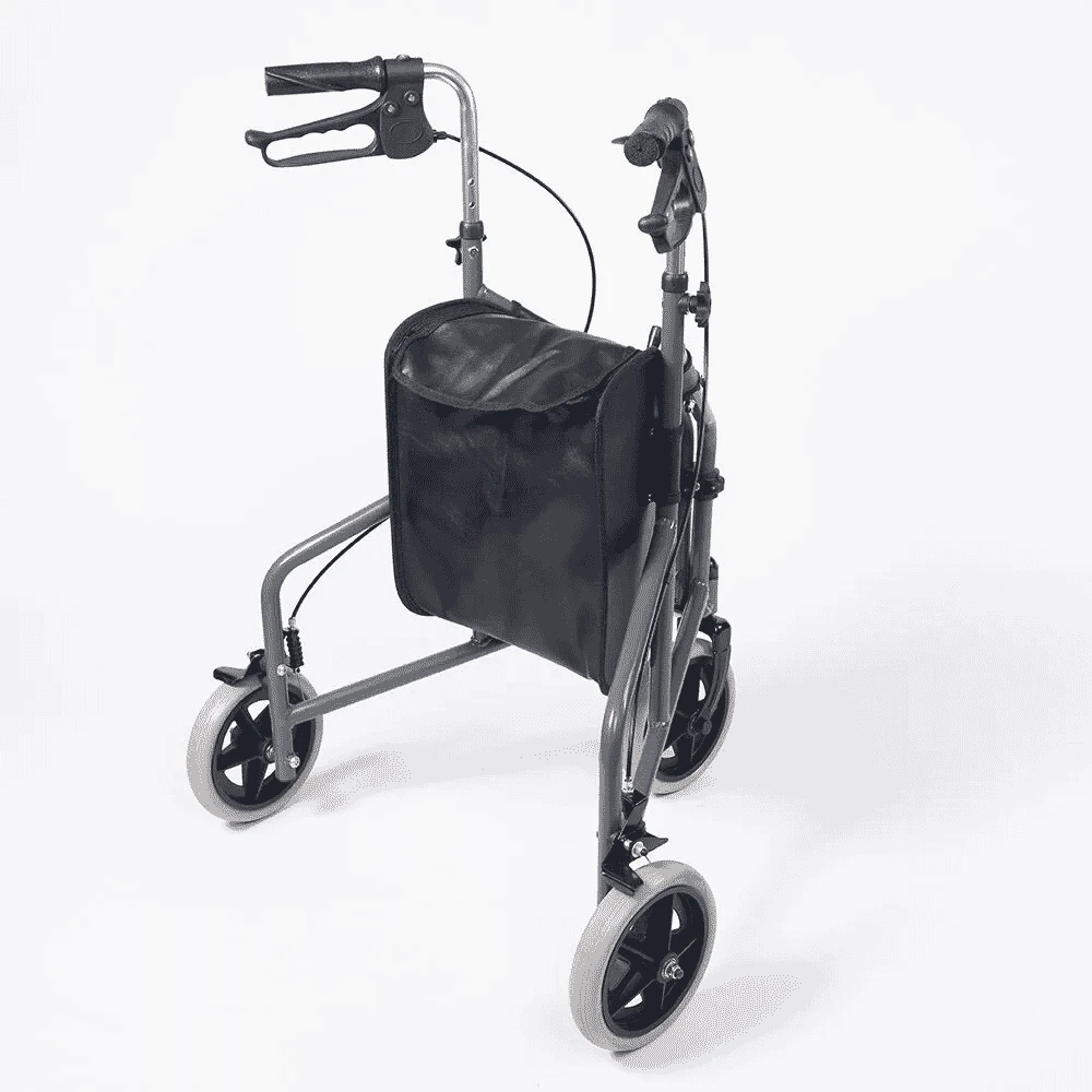 The NRS Healthcare 3 Wheel Rollator with Bag is also fitted with parking brakes for additional safety.