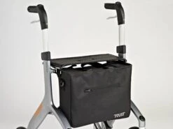 Two under-seat hooks enable a carry bag to be attached to the Lets Fly Rollator.