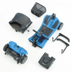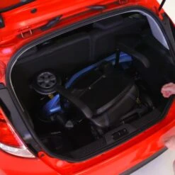 This blue Lithilite Boot Scooter uses Lithium-Ion battery technology, delivering exceptional performance, enhanced durability, and remarkably fast charging times. These batteries possess the added advantage of being smaller and lighter compared to more commonly used alternatives. Equipped with front and rear suspension, this scooter ensures a comfortable ride even on uneven terrains. It offers ample leg space, height-adjustable armrests, and a seat that can be adjusted in height, guaranteeing optimal comfort during journeys. Dismantling and assembling the scooter is effortless, making it ideal for convenient storage and hassle-free transportation. The Lithilite Boot Scooter boasts a maximum speed of 6 km/h (4 mph) and can travel up to 15 miles on a single charge. For air travel convenience, an Air Safe Battery variant is also available, fully compliant with the regulations set by the Civil Aviation Authority. This allows the Lithilite Boot Scooter to accompany you on your holiday trips by plane.