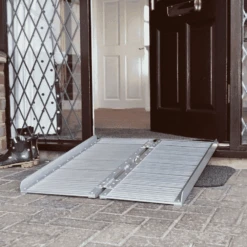 This full-width aid features folding handles to provide easier carrying as well as safety curbs for smoother wheelchair transfers.