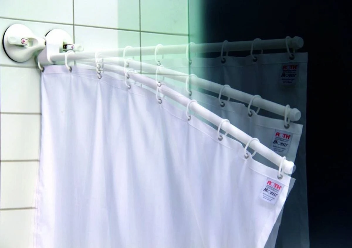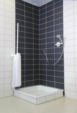 The long flexible arm of the Mobeli Shower or Bath Curtain Screen is made in three parts and has been designed not to exert a strong downward force on the wall.