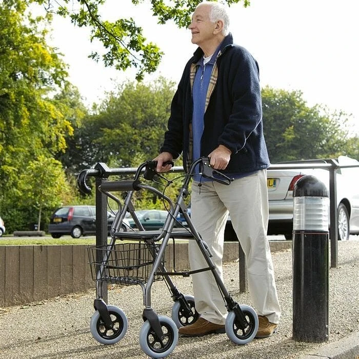 The Mobility Care Heavy Duty Rollator – Titanium is a walking aid designed for larger users.