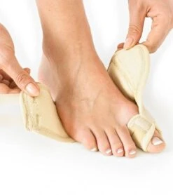 It attaches around the foot and toe and immobilises the Hallux Vagus, enabling healing of bunions to take place.