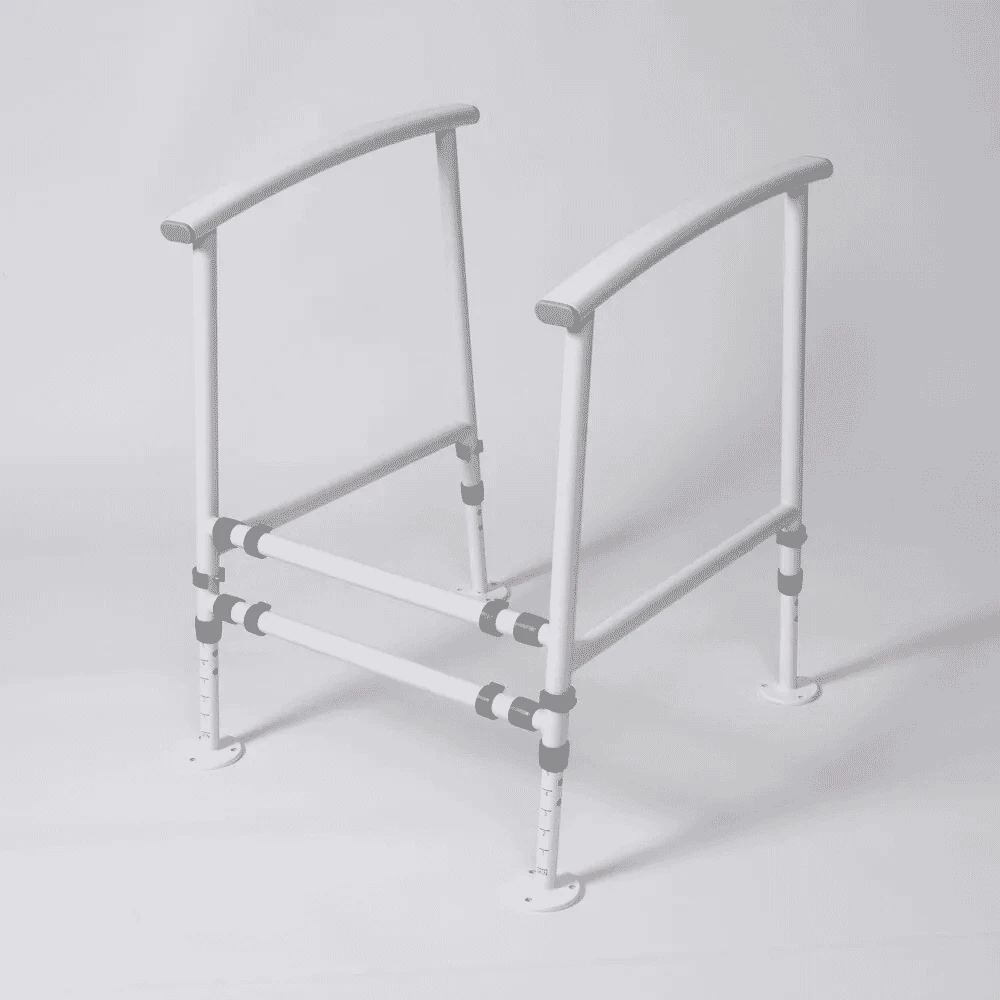 This ensures that the toilet frame will not fall or tip over in the event that the child leans or hangs on one side of the frame.