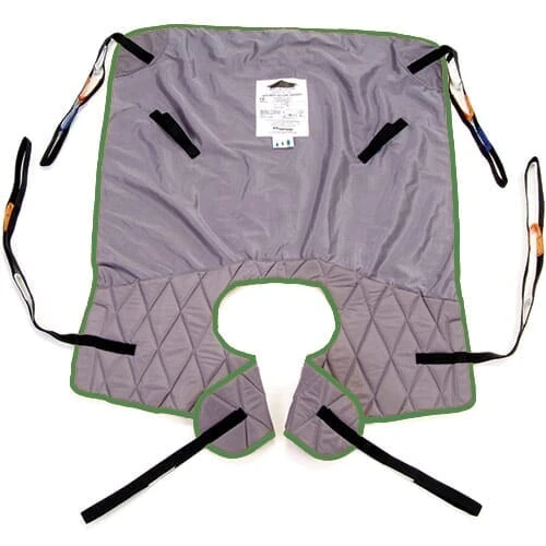 The sling is made from a durable polyester that is easy to clean and makes this sling suitable for use in toileting activities.