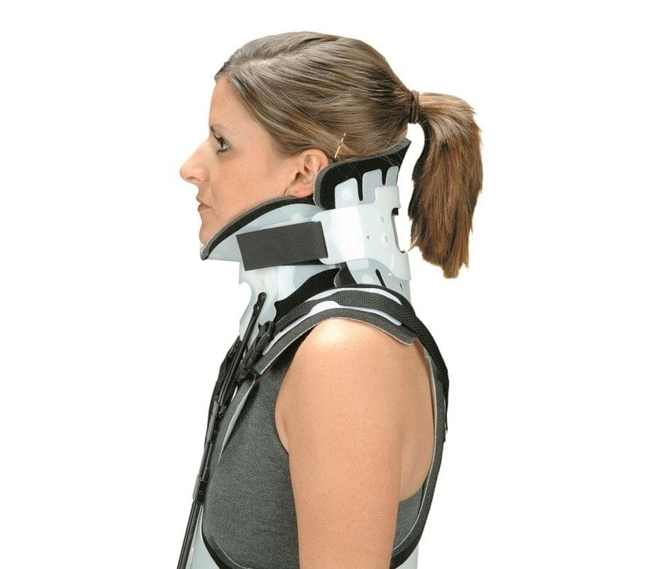 The Paediatric XTW Cervical and Thoracic Orthosis consists of an adjustable neck collar attached to a substantive chest and back shell.