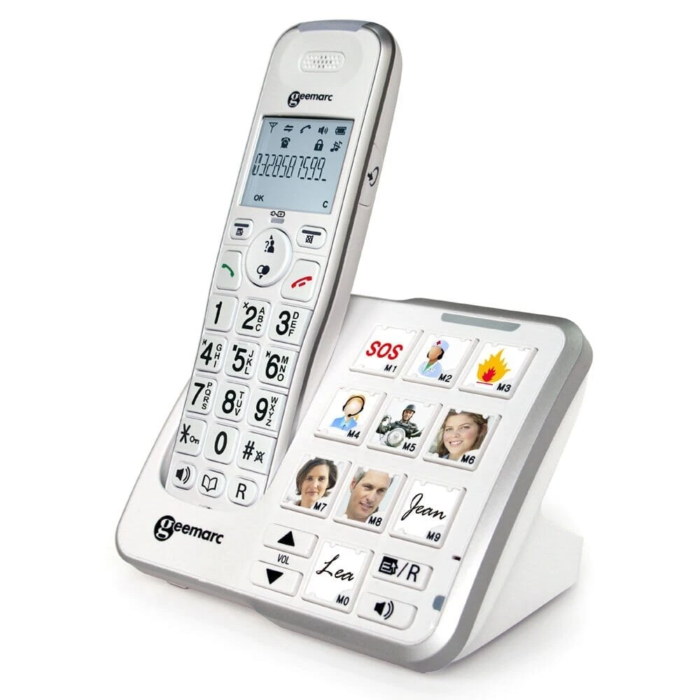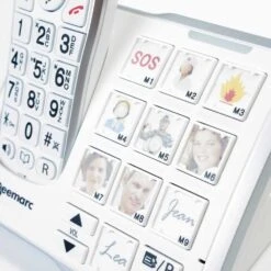 - : The 10 one-touch memories with customisable pictures on the phone’s base allow you to call your loved ones at the press of a button.