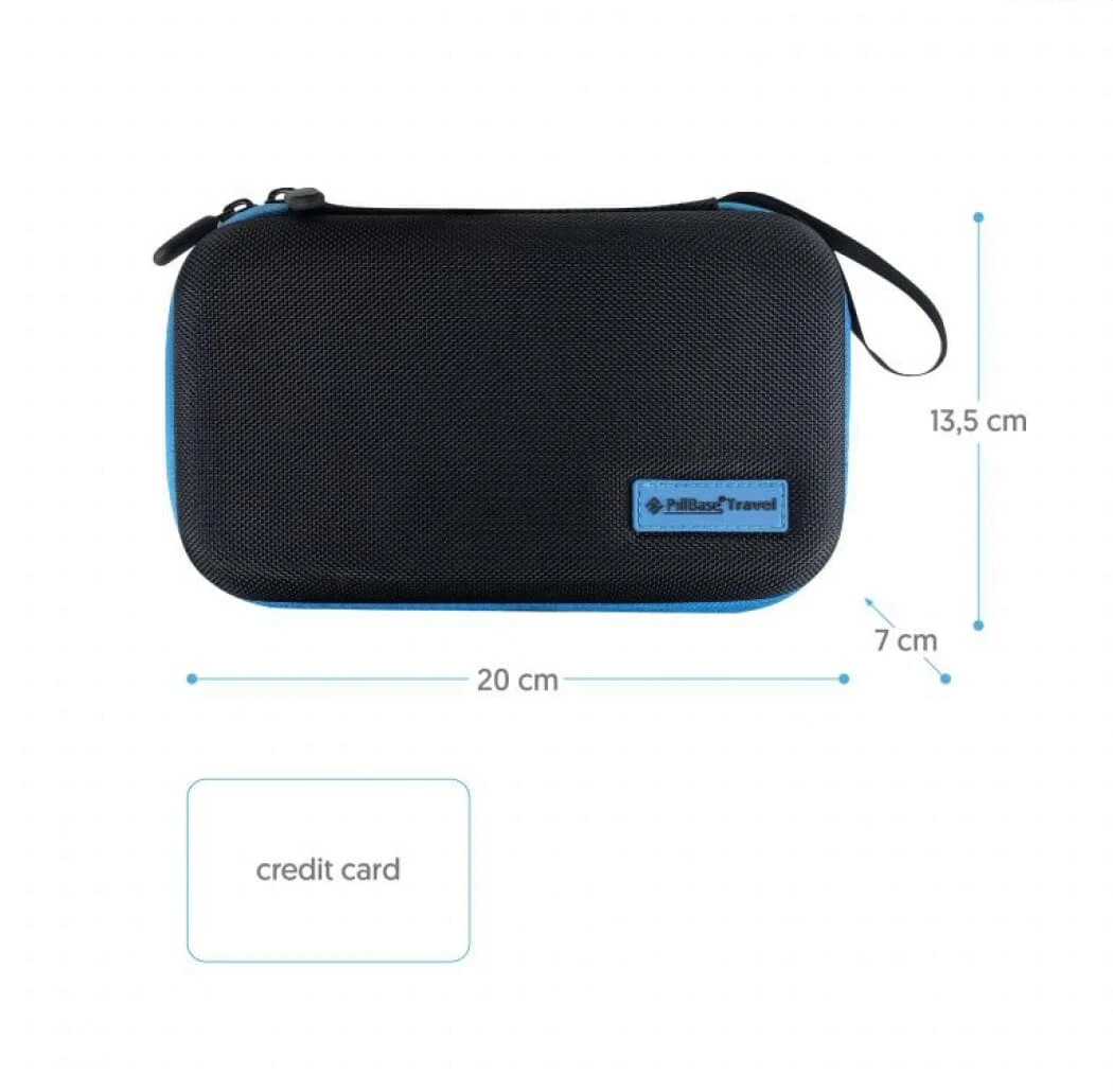 The Pillbase Travel Case is a lightweight pocket case for storing medication when travelling.