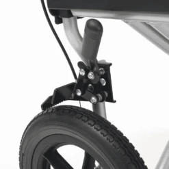 The Premium Aluminium Drive Wheelchair has a modern silver finish and is both lightweight and durable, folding easily into a compact size for transport and storage.