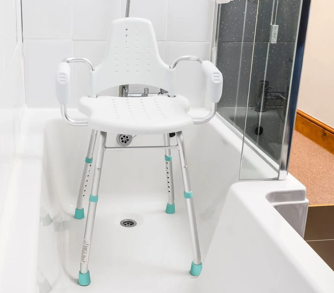 - A : the Prima can be a complete shower chair, a shower stool or a shower stool with arms.