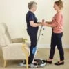 When positioned in front of a seat and anchored by a carer, the user can support themselves with the handle and rise up out of a chair.