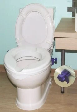 Side brackets allow the Senator Plastic Raised Toilet Seat to be fixed in place on an existing toilet bowl.