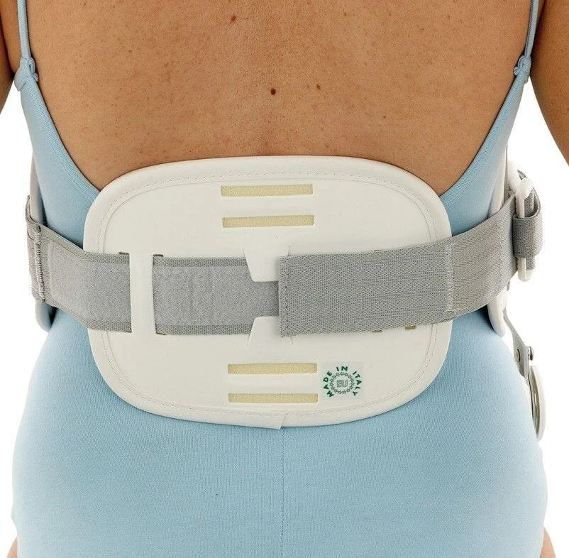 It offers the wearer support in both sitting and standing positions and prevents hyperextension of the spine.