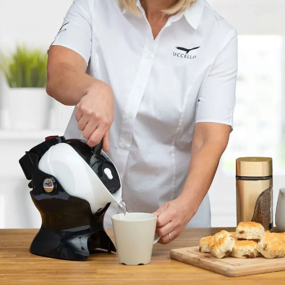 The Uccello Ergonomic Easy Pour Kettle and Tipper has auto shut-off with overheating, boil dry protection features plus a power indicator light.