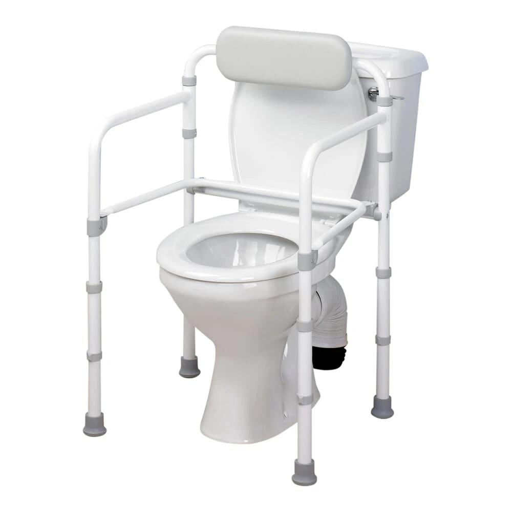 The Uni-Frame Folding Toilet Frame can be used over most conventional toilets and is adaptable for most adults, combining convenience and comfort.