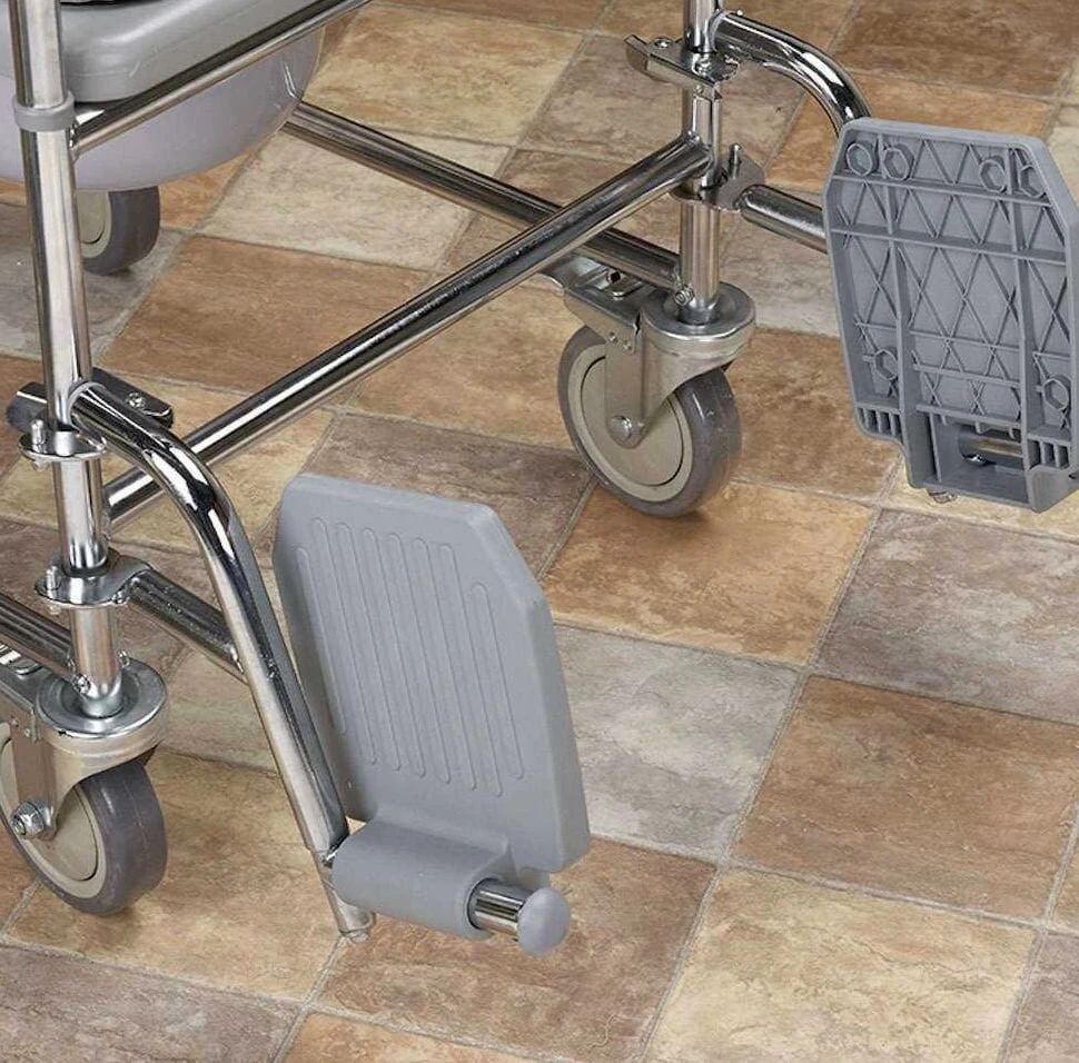 For added stability, the four castors include brakes which lock the Wheeled Commode in the desired position.