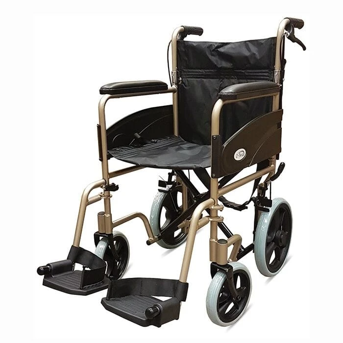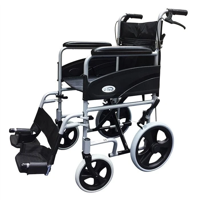 The Z-Tec Folding Aluminium Transit Wheelchair With Hand Brake is the ideal wheelchair for patient transit, travelling or short term usage.
